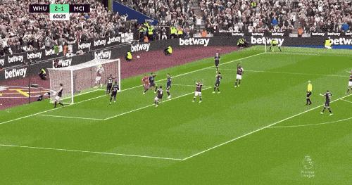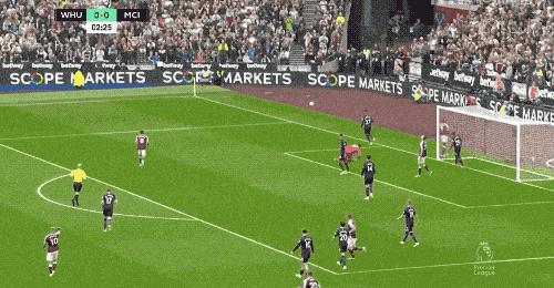 半场过后,西汉姆联只有3次射门,曼城13次射门,2次射正,场上比分却是2-0,西汉姆联领先!