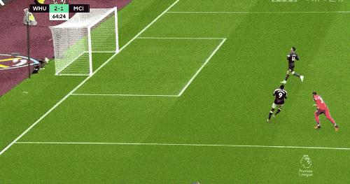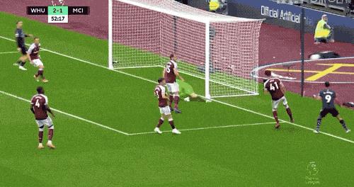 第52分钟,曼城继续狂攻,热苏斯闪转腾挪,晃晕西汉姆联的防守,但他的小角度射门,被法比安斯基挡出。