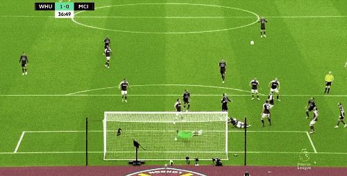 第23分钟,西汉姆联发动快速反击,鲍文反越位得手,冷静过掉埃德森,小角度皇冠足球射门,西汉姆联1-0领先。